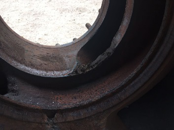(2)2號隔板端面***大磨損深度0.60mm,修復(fù)外圓徑φ358.888mm,修復(fù)后的葉輪凸臺高出端面未磨損基準面0.5mm,修復(fù)面積65.27dm2。