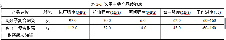 (2)高分子顆粒陶瓷是一種雙組份、填充陶瓷小顆粒、高性能表面涂層材料,主要成分是碳化硅、金屬碳化物和超硬陶瓷,具有良好的耐磨蝕和腐蝕性能,作為耐磨蝕和耐腐蝕保護涂層被廣泛的應(yīng)用于各種化工設(shè)備及通用設(shè)備。適合應(yīng)用于灰漿泵、水泵、風機、水輪機蝸殼、凈化煙道、氧化鋁粉輸送管道等內(nèi)壁防腐耐磨局部或大面積修復(fù)。